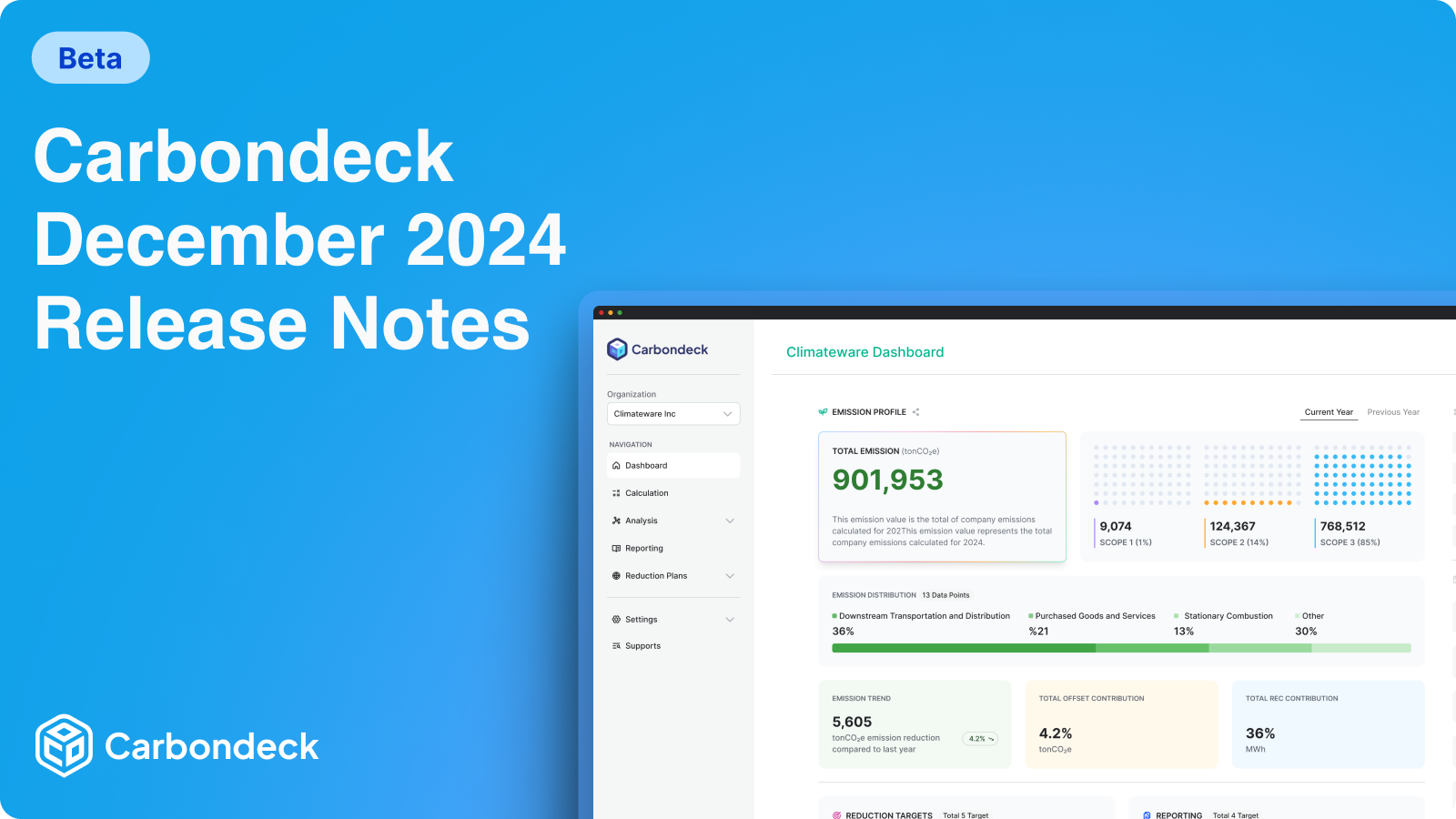 We continue to develop Carbondeck and respond better to the needs of our users. With the December 2024 release notes, we are offering a more accessible and effective carbon management experience. Here are the highlights of this month: