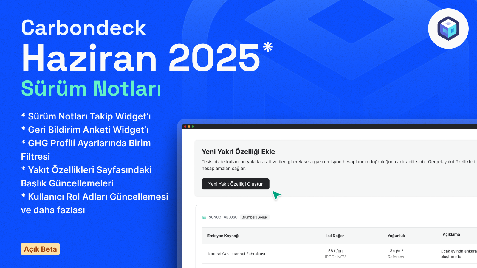 Karbon yönetiminde süreçlerin daha net, kontrollü ve akıcı ilerlemesi çok önemli. Bu ay yaptığımız geliştirmeler; sizlere zaman kazandırmak, hataları en aza indirmek ve sürecinizin her adımını daha sorunsuz hâle getirmek için tasarlandı. Emisyon verilerini incelerken, ayarları düzenlerken veya rapor oluştururken artık işler çok daha kolay ve tutarlı.